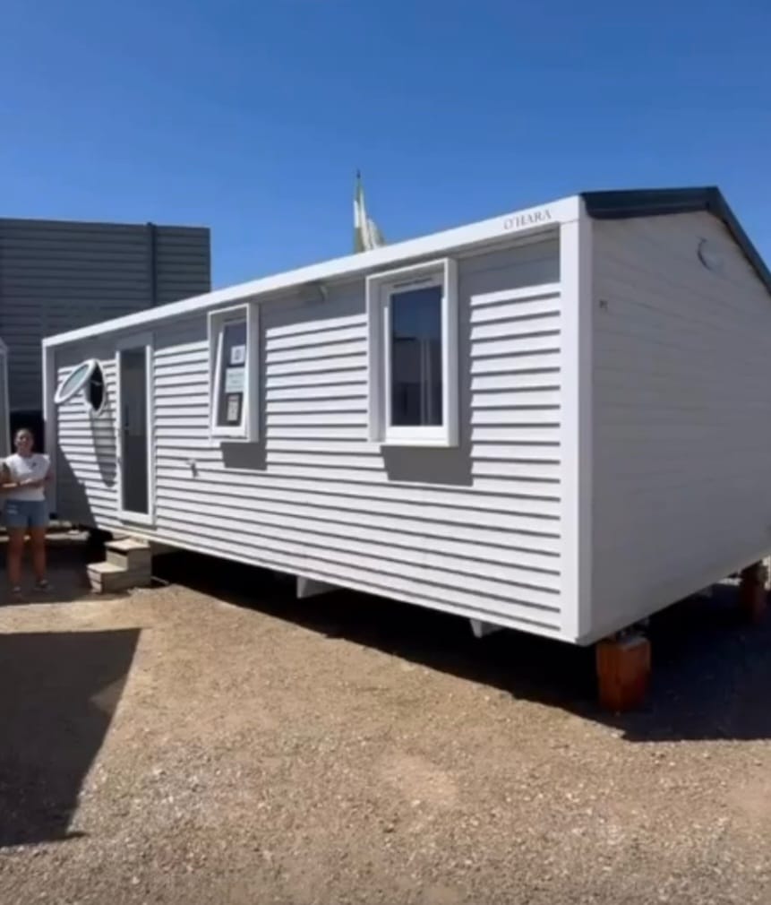 Mobile Home de la marca OHARA. Cuenta con 42m2, en los cuales dispone de salón comedor, cocina, tres ... dormitorios y un cuarto de baño. Tiene calefacción y se entrega totalmente amueblada y equipada. Transporte gratuito hasta 700km. Posibilidad de financiación total.